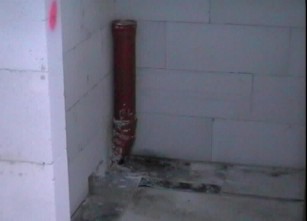 Bei der Erstellung der Bodenplatte wurde das Leerrohr für das Abwasser aus den beiden Bädern falsch positioniert (und das, obwohl eine Zeichnung mit genauen Maßen vor Ort war). Es befand sich ca. 15cm von seiner geplanten Lage entfernt und wäre von der Mauer zum Wohnzimmer "überdeckt" worden. Dieses Problem wurde zwar gelöst, aber durch diese "Kurve" des Rohres könnten später Verstopfungen entstehen - hoffen wir mal das Beste.