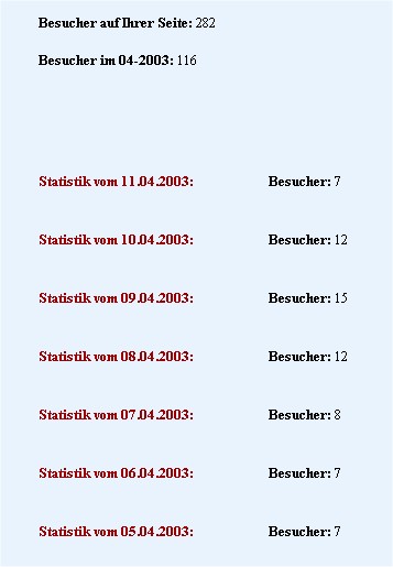 Sollte trotzdem mal etwas fehlen, einfach mailen oder das Gästebuch nutzen! (Das mit dem Gästebuch scheint noch nicht jeder gesehen zu haben, oder :-)