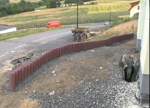Die letzten Tage vom Urlaub nutzten wir damit, zumindest schon mal mit den Palisadensteinen anzufangen, denn erst danach können wir den Schotter kommen lassen, mit dem wir wohl bis zum nächsten Sommer leben müssen.