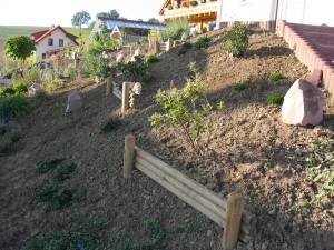 Angelas großen Wunsch, ein paar Findlinge in den Vorgarten zu setzen, konnte ich nur zum Teil erfüllen: Der Transport und die Kosten dafür waren doch erheblich höher als gedacht - jedoch unter der Mithilfe eines sehr netten Herrns in einem Steinbruch konnte ich nahezu kostenlos mehrere kleine Bruchstücke, die man noch selbst transportieren konnte, organisieren. Das Ergebnis, so finde ich zumindest, kann sich trotzdem sehen lassen und mein Kreuz hat´s auch gedankt !