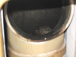 Kurios war ein ganz anderer Fall dieser Tage. Ein merkwürdiges "Geflatter", welches wir erst nach intensivem Suchen orten konnten, veranlasste uns, einen Blick in die Reinigungsöffnung des Kamins zu werfen, und siehe da: Unangemeldeter Besuch ! Na ja, er war sicherlich froh, aus dieser dummen Lage von uns befreit zu werden, von der Farbe her könnte der kleine Freund jetzt als Amsel durchgehen ;-)