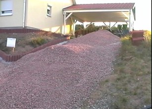 Wie es dann so ist, kommt alles gleichzeitig, allerdings sind wir auch froh darüber. Über unsere neuen Nachbarn haben wir eine "gute Adresse" erfahren, um Schotter und Baugerät zum Rütteln preiswert zu bekommen. Der Schotter ist schon mal da, wie man sieht. Der Rest ist allerdings noch zu erledigen ...