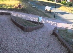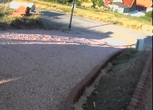 Kurze Zeit später kam dann die versprochene Hilfe. Mit einem Radlader war innerhalb von wenigen Minuten der ganze Berg von Schotter über die doch mittlerweile arg in Mitleidenschaft gezogene Einfahrt verteilt. Durch den mitgebrachten Rüttler die ganze Sache ein wenig verdichtet (mein Gott, mit zwei Mann das schwere Teil immer die Einfahrt hochdrücken war eine ganz schöne Plackerei !) und das Hochfahren mit dem Auto fällt gleich viel leichter.