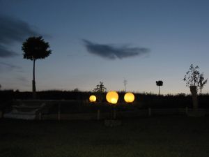 Ein kleines Highlight haben wir uns trotzdem noch für unseren Garten gegönnt. Die auf dem Foto hoffentlich zu erkennenden Kugeln bringen ein besonderes Ambiente in den Garten - hoffentlich sind sie auch frostsicher ;-)