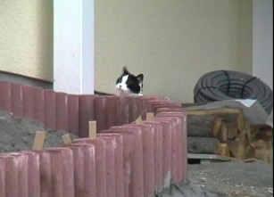 Dumm an der Sache ist, daß wir so langsam richtig saubere Linien und Formen reinbringen können. Schade, denn erst wenn wir fertig sind, können wir´s gut - leider dann aber zu spät. Eine weitere Reihe sitzt jetzt und unsere Katze (der Kater pennt wie immer tagsüber) betrachtet sich das Ergebnis, wie immer sehr kritisch ...