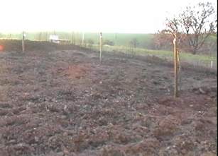 Um zu einem schnellen Ergebnis zu kommen, haben wir uns für eine schnellwüchsige, immergrüne Liguster - Hecke entschieden. Etwas deprimiert waren wir schon, als wir die "Pflänzchen" nach der Lieferung betrachteten. Aufgrund der Tatsache, daß die Pflanzen keine Wurzelballen besitzen war Eile geboten, es hieß jetzt 50 m Hecke oder auch 200 Pflanzen innerhalb eines Tages zu setzen, welches uns dank geleisteter Vorarbeit auch glückte.