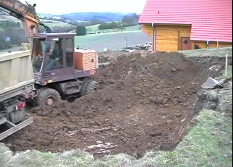 Wie es der Zufall so will, rief danach der Tiefbaufirma-Chef an und fragte nach, ob er noch weiter Erde abfahren solle. Die geplanten 200m³ waren jetzt fast erreicht. Naja. Zum späteren Auffüllen im Garten sowie Eingangsbereich brauchen wir ja noch eine gute Menge, deshalb winkten wir auch ab.