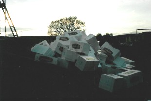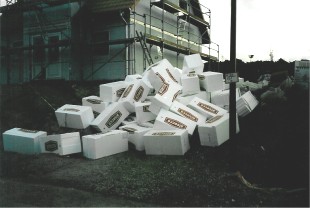 Tja, den Betonmischer, Schubkarren und alle Leitern vom Gerüst wollten wir eigentlich nur in Sicherheit bringen, hätten wir die Styroporplatten liegen gelassen, wäre dies zu einem großen Desaster geworden. Aufgrund des Gewichts der 3 Paletten hofften wir auf unser Glück, daß diese die Nacht unbeschädigt überleben würden.